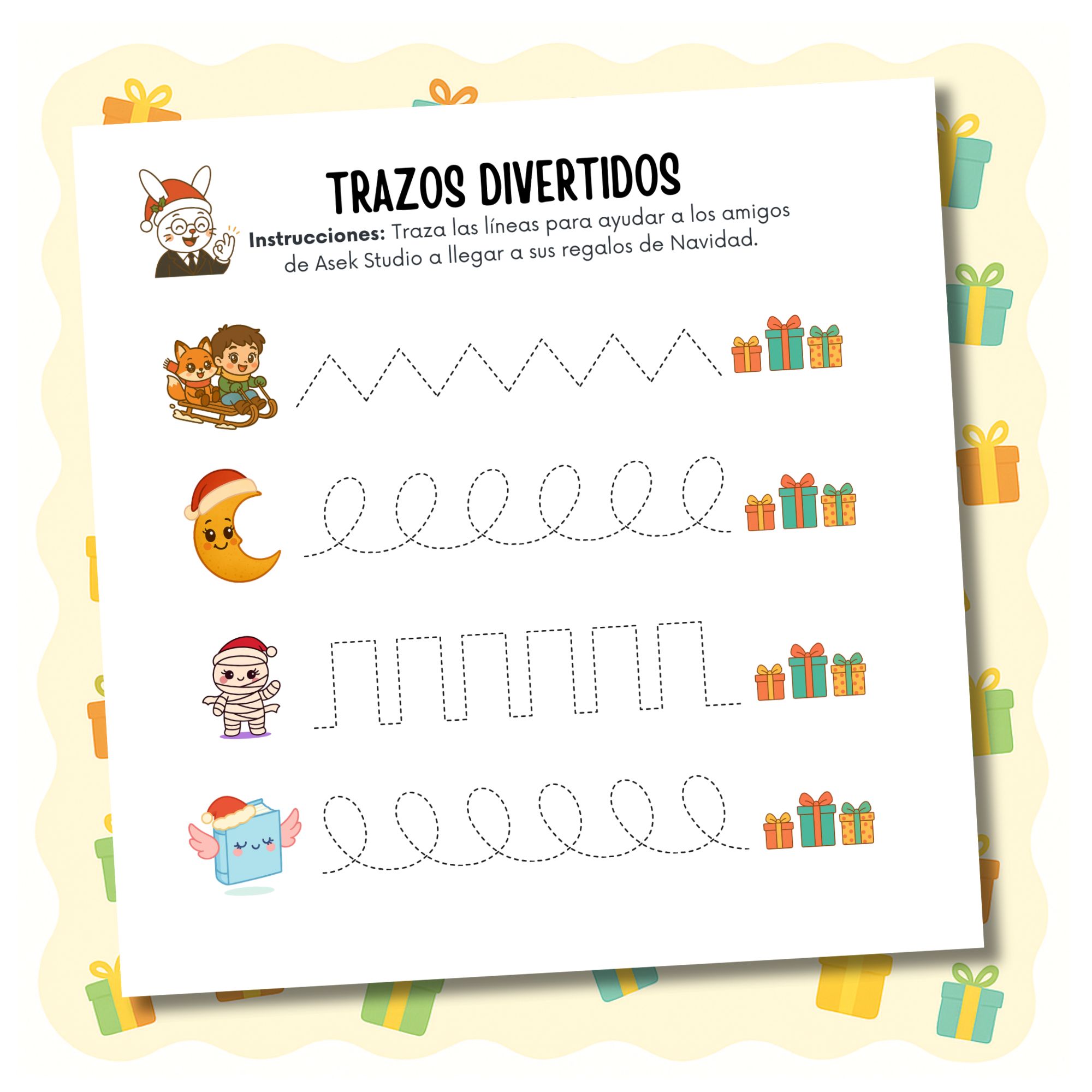 Entre traços, activitats de retall, laberints, dibuixos festius i molt més, els petits desenvolupen motricitat fina, preescriptura, coordinació i creativitat mentre juguen i s’endinsen en l’esperit nadalenc.