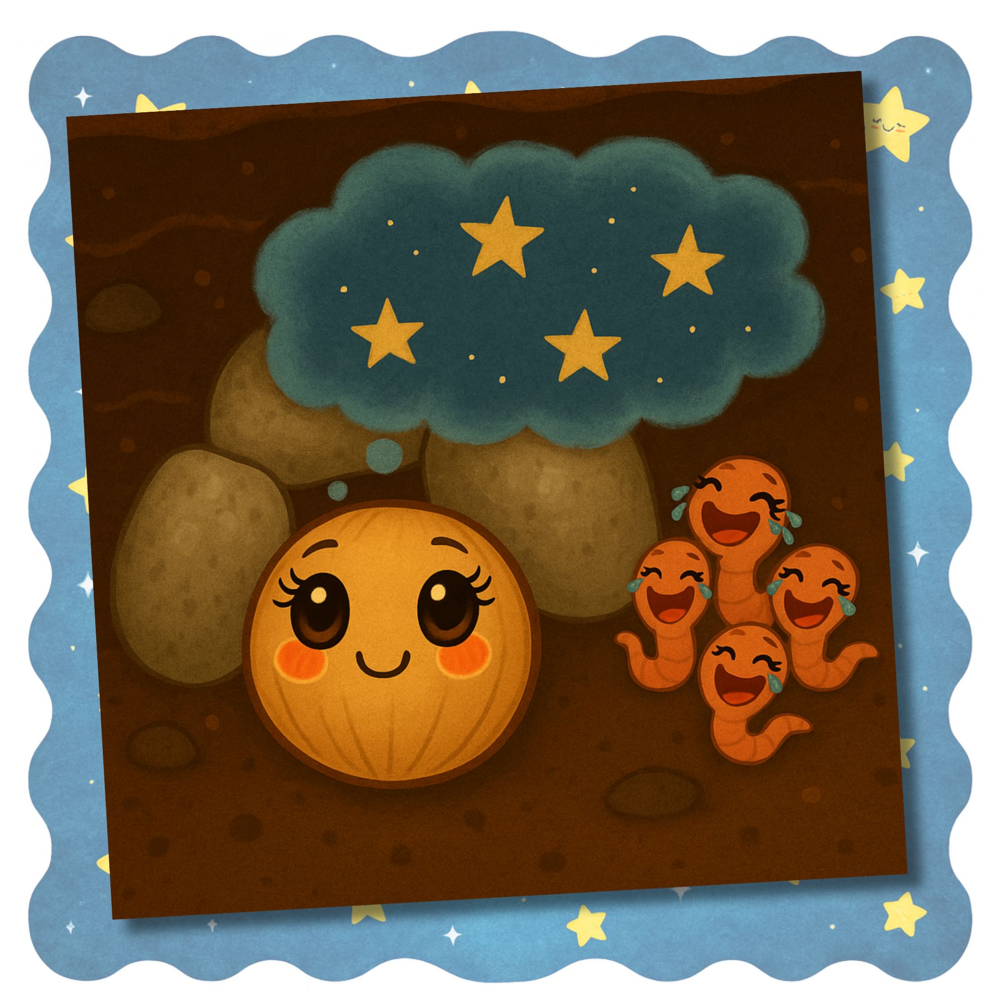 Sota la terra, una llavor menuda somia amb veure les estrelles. Tot i la foscor i els obstacles, no es rendeix: empeny amb força, creix amb paciència i descobreix que, quan segueixes els teus somnis, pots arribar més lluny del que mai hauries imaginat.