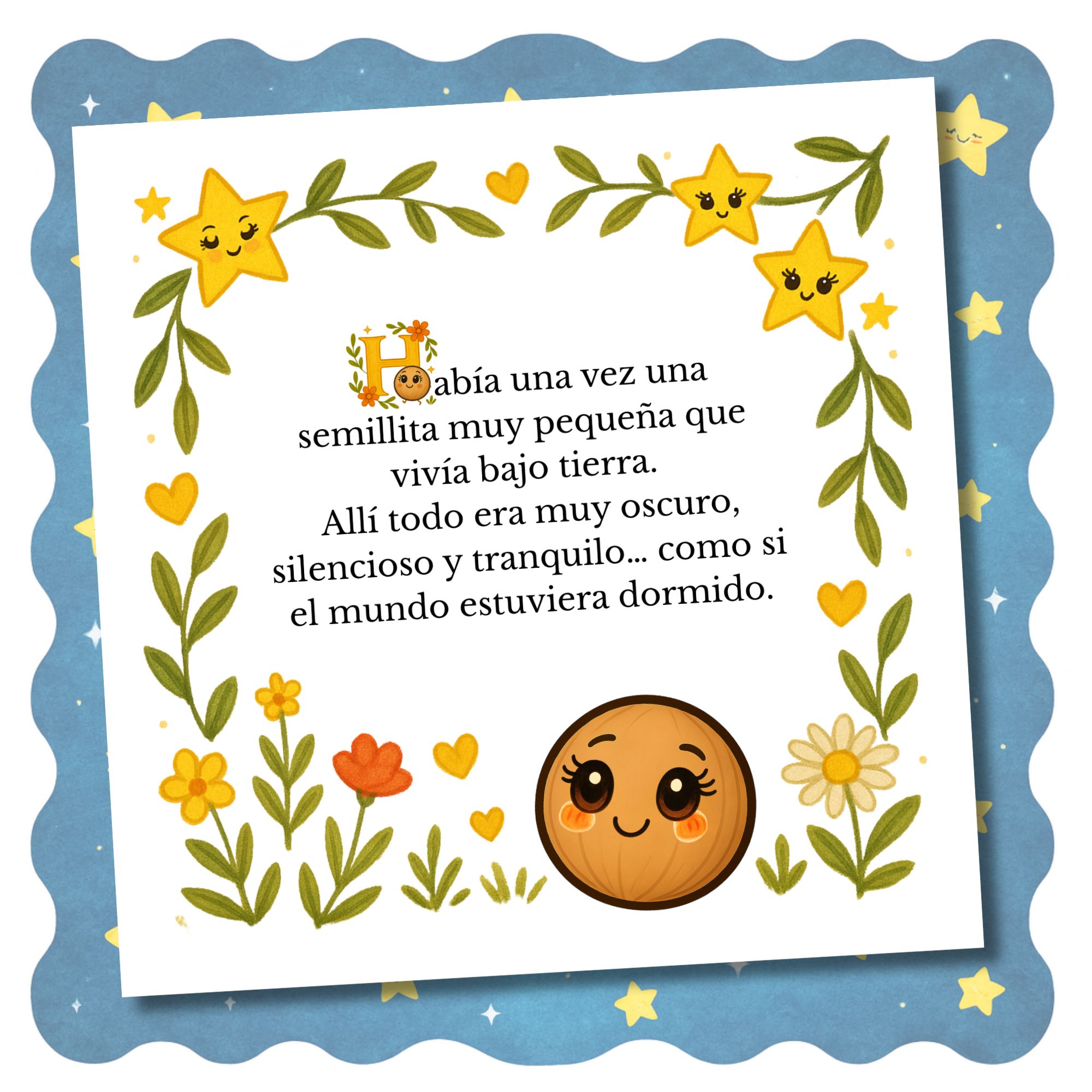 Sota terra, una diminuta llavor somia amb veure les estrelles. Malgrat la foscor i els obstacles, no es rendeix: empeny amb força, creix amb paciència i descobreix que, quan segueixes els teus somnis, pots arribar més lluny del que mai havies imaginat.